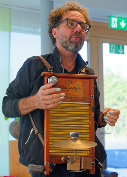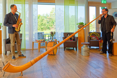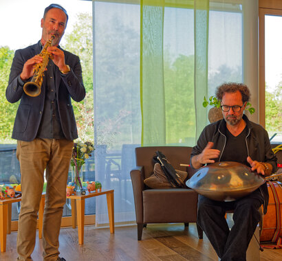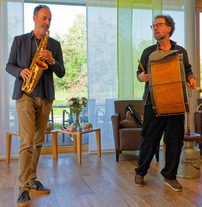 Am 12. Oktober sind wir im wahrsten Sinne des Wortes überrannt worden und mussten zusätzliche Stühle herbeischaffen (72 Anwesende, das Kafi Bergli war zum Bersten voll!). Die zwei Künstler sind wirklich top Musiker und das Ganze war ein wunderbarer Ohrenschmaus, z.T. haben die Zuschauer:innen bei altbekannten Liedern spontan mitgesungen. Auch der anschliessend gemeinsame Mittagstisch war eine sehr gemütliche Runde, es gab viel zu erzählen und lautes Gelächter war überall zu hören. Und es wurden auch neue Kontakte geknüpft. Ein rundum gelungener Anlass!